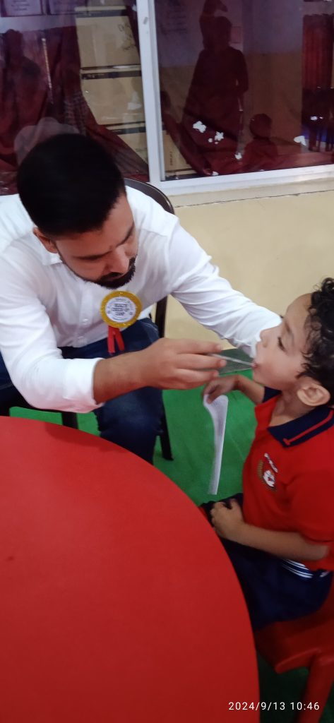 विद्यालय के कार्यालयीन स्टॉफ के द्वारा प्रत्येक विद्यार्थियों का पंजीयन किया गया तत्पश्चात विद्यार्थियों कतारबध्द होकर अलग-अलग डॉक्टरों के पास जाकर अनुशासित होकर अपने दाँतों का परीक्षण करवाए ।सभी विद्यार्थियों के डेंटल चेकअप में प्री प्राइमरी विंग के सभी शिक्षिकाओं का सराहनीय योगदान रहा। डॉ. इम्तियाज ने बताया कि मानव शरीर में दाँतों का अपना विशेष स्थान है । यदि आपके दाँत सुंदर और आकर्षक हैं तो आप सभी के प्रशंसा के पात्र बनते हैं । जरूरत है दाँतों की उचित देखभाल व नियमित सफाई की । दाँतों की देखभाल व सफाई में की गई जरा सी भी चूक हमारे लिए परेशानी का सबब बन जाती है । मानव मुखड़े की सुंदरता बहुत कुछ दंत या दाँत पंक्ति पर निर्भर रहती है । दाँतों की नियमित सफाई में हमारे ब्रश करने का तरीका भी अपना महत्व रखता है । हमें ब्रश करने के लिए कोमल ब्रश का उपयोग करना चाहिए एवं गोलाकार घुमाकर ब्रश करना चाहिए । हमें हमेंशा संतुलित आहार व अच्छा पोषण लेना चाहिए । हमें अपने दाँतों के व्यायाम के लिए कड़ी चीजें जैसे-गन्ना, कच्ची सब्जियाँ फल आदि खाना चाहिए।