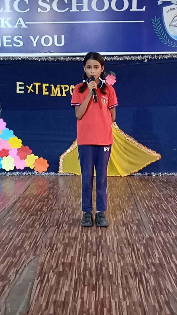 विद्यालय के प्राचार्य डॉक्टर संजय गुप्ता ने कहा कि आशु भाषण सर न सिर्फ विद्यार्थियों की तर्क शक्ति का विकाश होता है अपितु उनमें आत्मविश्वास का भी संचार होता है।उनके वक्तव्य से उनके भावी सच का पता चलता है।उनके मन की झिझक दूर होती है।सार्वजनिक भाषण कई स्तरों पर व्यक्तिगत विकास का एक शानदार तरीका है , क्योंकि संचार कौशल में सुधार जीवन के लगभग हर क्षेत्र में सहायक होता है। चाहे आपका लक्ष्य राजनीतिक बहस में शामिल होना हो, प्रेरक वक्ता के रूप में अपना करियर बनाना हो या दर्शकों के सामने आत्मविश्वास हासिल करना हो, सार्वजनिक भाषण आपको अपने लक्ष्य को पूरा करने में मदद कर सकता है।प्रभावी सार्वजनिक भाषण कौशल कैरियर में उन्नति में सहायक हो सकते हैं, क्योंकि वे रचनात्मकता, आलोचनात्मक चिंतन कौशल, नेतृत्व क्षमता, संतुलन और व्यावसायिकता जैसे गुणों का संकेत देते हैं, जो नौकरी बाजार के लिए बहुत मूल्यवान हैं।कार्यक्रमों और सम्मेलनों में बोलना विश्वसनीयता बनाने का एक अच्छा तरीका है। जितना ज़्यादा मशहूर कार्यक्रम होगा उतना ही बेहतर होगा, क्योंकि आप इन भाषण उपलब्धियों को अपने रिज्यूमे में जोड़ सकते हैं।सार्वजनिक रूप से बोलना भी आपको काम पर अलग दिखने में मदद कर सकता है। आप बैठकों में बोलना, अपने विचारों को बढ़ावा देना और खुद को एक पेशेवर के रूप में पेश करना सीखेंगे। बोलने का कौशल आपको नौकरी के साक्षात्कार में भी बेहतर प्रदर्शन करने में मदद कर सकता है ।सार्वजनिक भाषण आलोचनात्मक सोच कौशल विकसित करने का एक शानदार तरीका है।