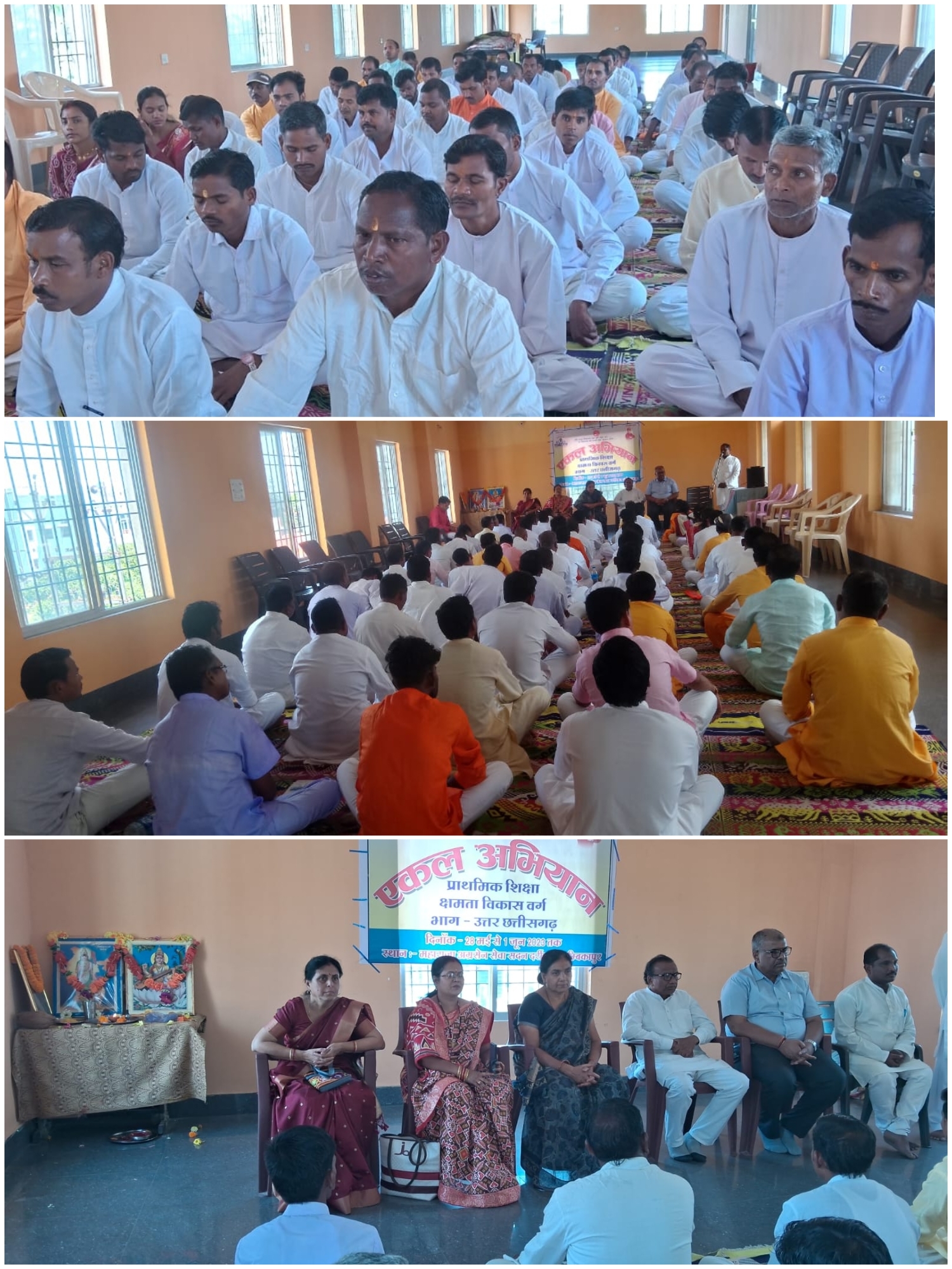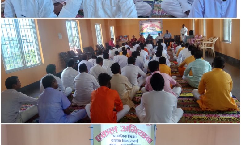 अंबिकापुर 28मई,एकल अभियान उत्तर छत्तीसगढ़ का प्राथमिक शिक्षा क्षमता विकास वर्ग दिनांक 28 मई से 01 जून 2023 तक 6अंचलों का मां महामाया नगरी के पावन धरा अग्रसेन महाराजा सेवा सदन अंबिकापुर (दरी पारा ) में सम्मानीय समितियों के द्वारा वर्ग का शुभारंभ किया गया। जिसमे उपस्थित भगवानदास बंसल एकल अभियान सम्मानित भाग संरक्षक एवं संभाग आरोग्य योजना प्रभारी विनोद अग्रवाल ,भाग ग्राम विकास प्रभारी कृष्णा शर्मा