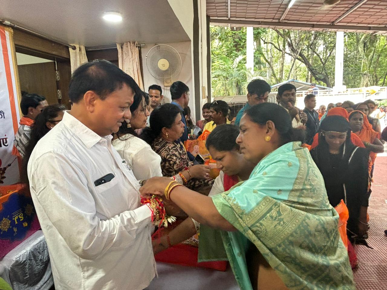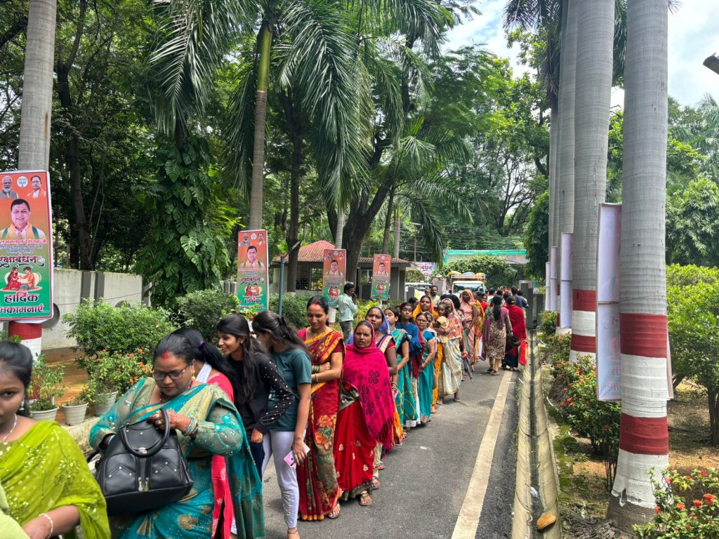 सुबह से दोपहर तक मंत्री के शासकीय निवास में राखी बांधने के लिए बहनों का लगा रहा तांता…. Korbavani.com- फोटो कोरबा। प्रदेश के वाणिज्य उद्योग और श्रम मंत्री लखन लाल देवांगन को 10 हजार से अधिक बहनों ने प्रेम और विश्वास की डोर बांधकर अपना आशीर्वाद दिया। सोमवार को रक्षाबंधन के पवित्र पर्व पर पर मंत्री श्री देवांगन के पंचवटी के समीप शासकीय आवास डी 1 आयोजित “बहनी मन संग राखी के तिहार” में सुबह से ही अधिक संख्या में महिलाओं और बहनों का पहुंचना शुरू हो गया था। दोपहर तक 10 हजार से अधिक महिलाओं ने अपने भाई को राखी बांध कर आशीर्वाद दिया।इस अवसर पर मंत्री श्री देवांगन ने सभी से स्नेह पूर्वक राखी बंधवाई और उनके आशीर्वाद के लिए आभार व्यक्त किया। मंत्री श्री देवांगन ने कहा कीभाजपा की सरकार में माननीय मुख्यमंत्री विष्णुदेव साय द्वारा सभी बहनों को महतारी वंदन योजना के तहत् प्रतिमाह 1 हजार रूपए दिए जा रहे हैं। महिलाओं के सशक्तीकरण की दिशा में तेजी से कार्य किए जा रहे हैं। इस अवसर पर भाजपा जिला अध्यक्ष डॉ राजीव सिंह, जिला उपाध्यक्ष प्रफुल्ल तिवारी, वॉर्ड क्रमांक 16 के पार्षद नरेंद्र देवांगन, कोसाबाड़ी मंडल अध्यक्ष अजय विश्वकर्मा, कोरबा मंडल अध्यक्ष परविंदर सिंह, बालको मंडल अध्यक्ष शिवबालक, दर्री मंडल के अध्यक्ष ईश्वर साहू, लक्ष्मण श्रीवास, तुलसी ठाकुर, नारायण ठाकुर समेत अधिक संख्या में भाजपा के महिला कार्यकर्ता शामिल हुईं। हर वर्ग और समाज की बहनें पहुंची राखी बांधने अपने भाई लखन को राखी बांधने के लिए हर वर्ग समाज की बहनों में उत्सुकता रही।कोरबा नगर निगम क्षेत्र के हर वॉर्ड से महिलाएं राखी उत्सव में शामिल हुई।