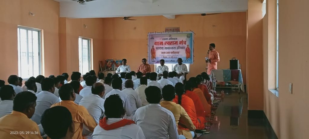 अंबिकापुर 29मई,एकल अभियान भाग उत्तर छत्तीसगढ़ आज दिनांक 29 मई 2023 को महामाया नगरी महाराजा अग्रसेन सेवा सदन अंबिकापुर में संपन्न हुआ जिसमें 3 सत्र हुए प्रथम के सत्र में परिचय एवं अनौपचारिक चर्चा के साथ बैठक संचालन हुआ एवं द्वितीय सत्र में श्रीमान प्रीतम कुलदीप जी के द्वारा मतदाता जागरूकता प्रशिक्षण के विषय पर विस्तृत जानकारी दिया गया भोजन पश्चात अंतिम सत्र में समिति पदाधिकारी एवं वरिष्ठ कार्यकर्ताओं के बीच समापन कार्यक्रम संपन्न हुआ जिसमें श्रीमान विवेक सिंह जी राष्ट्रीय स्वयंसेवक संघ के नगर सेवा प्रमुख (न्यायालय अधिवक्ता) द्वारा मतदाता संबंधित विस्तृत जानकारी एवं प्रश्न मंच के द्वारा समझाया एवं बताया गया इसके बाद अंतिम में अनुभव कथन के साथ एवं ग्राम स्वराज मंच का संक्षिप्त जानकारी देते हुए कल्याण मंत्र के साथ बैठक का समापन किया गया इस प्रशिक्षण वर्ग में प्रमुख रूप से प्रेम सिंह सिरसो प्रभाग P2 के अर्थव्यवस्था प्रमुख हरकेश्वर प्रसाद राजवाड़े संभाग अभियान प्रमुख प्रीतम कुलदीप संभाग ग्राम स्वराज योजना प्रमुख भागवत लाल नायक जी भाग अभियान प्रमुख श्री राजेश साहू भाग ग्राम स्वराज योजना प्रमुख एवं 6 अंचल के अंचल टोली कार्यकर्ता मुख्य रूप से उपस्थित थे