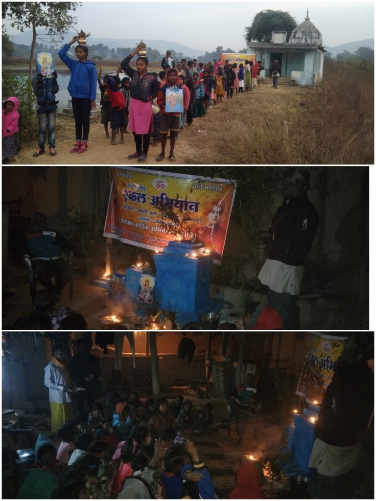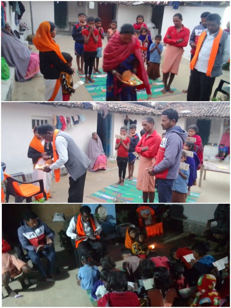 इसी कड़ी में विद्यालय ग्राम हरदी महुआ में भी आज 25दिसंबर को ग्राम प्रमुख के निवास पर तुलसी पूजन दिवस को पूरे हर्षोल्लास उमंग पूर्वक मनाया गया,इस अवसर देवपहरी गढ़ उपरोड़ा बड़गांव के जनपद सदस्य पुरन सिंह मंझवार मुख्य अतिथि के गरिमामय उपस्थिति में कार्यक्रम आयोजित किया गया इस अवसर पर मितानिन आंगनबाड़ी कार्यकर्ता सहायिका आचार्या अगिया कंवर एवम ग्राम वासी उपस्थित रहे,इस कड़ी में विद्यालय ग्राम बडगांव में भी सुबह बच्चों के आचार्या गणेशी कंवर द्वारा परिवार संपर्क कर तुलसी पूजन दिवस मनाने के दीवाल लेखन कार्य कर सतत संपर्क कर हर घर परिवार में तुलसी पूजन हो इसके लिए तुलसी पौधा लगाने के लिए प्रेरित किया गया,विद्यालय ग्राम बड़गांव मे आज सुबह वीर बाल दिवस रैली निकाला गया जिसमे संच समिती सचिव धनसिंह कंवर की उपस्थिति रही उनके द्वारा गुरु गोविंद सिंह के बलिदान को ग्राम वासियों के बीच रखा गया और भविष्य में इस तरह का बलिदान न देना पड़े इसके सतर्क रहें ऐसा संदेश दिया गया।