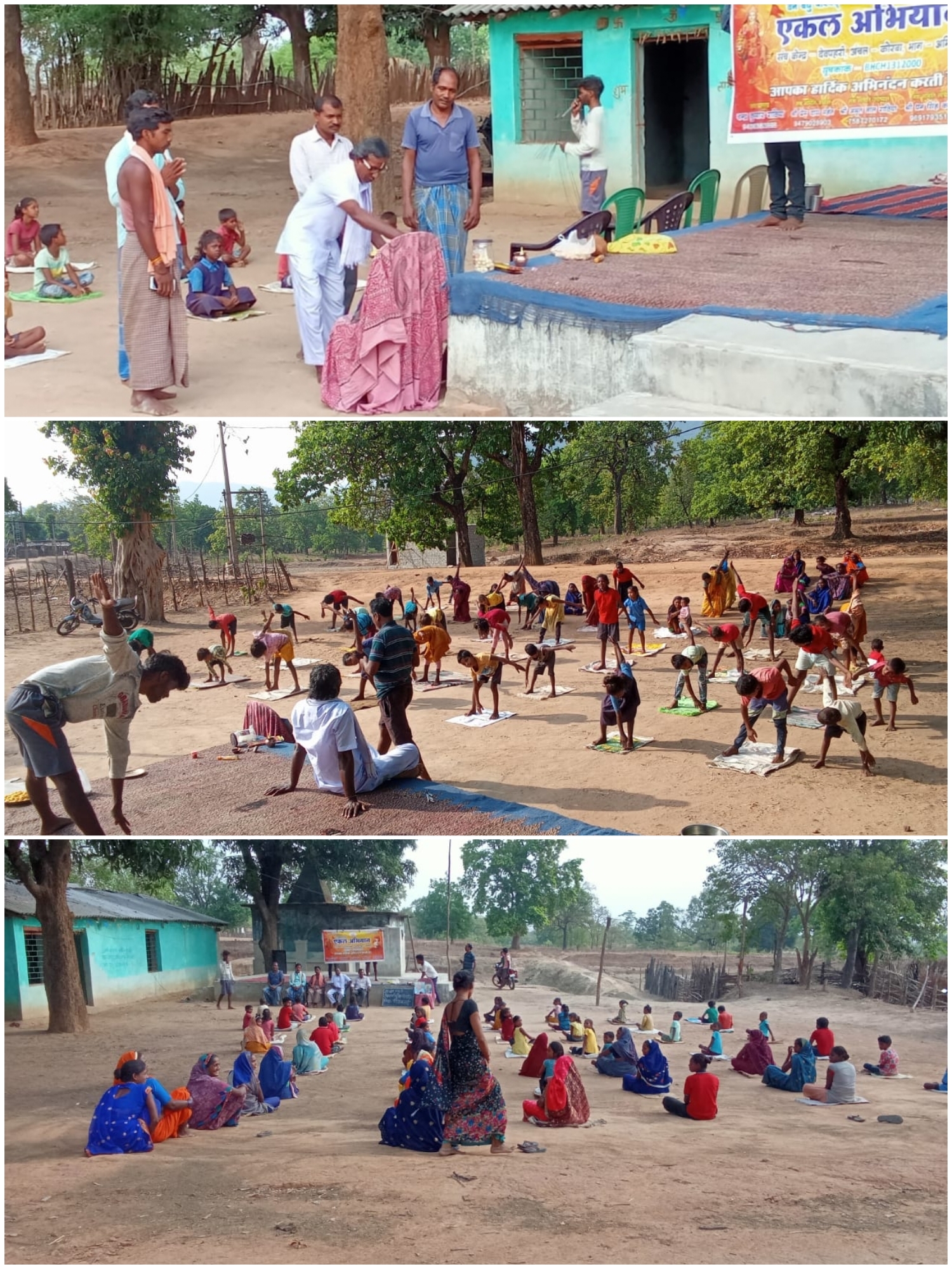देवपहरी 21 जून,कोरबा जिले के सुदूर वनांचल दूरस्थ अजगर बहार तहसील के अंतर्गत एकल अभियान के पंच मुखी शिक्षा को आगे बढ़ाने के एकल ग्राम संगठन देवपहरी ने जिम्मेदारी उठा रही है जो हमेशा छोटे छोटे कार्यों में लग कर अपना काम करती हैं। इस माह 21जून यानी आज अंतरराष्ट्रीय योग को विद्यालय ग्राम डीडासराई में सुबह 7बजे से संच समिती अध्यक्ष प्रेमदास महंत , देवपहरी सरपंच बंधन सिंह कंवर,ग्राम प्र जगदेव सिंह कंवर,सतसंग प्रमुख नेपाल सिंह संच स्तर समिति सदस्य राजाराम कंवर के द्वारा मां भारती सरस्वती मां के प्रतिमा पर दीप प्रज्ज्वलित कर योग दिवस का शुभारंभ किया गया,सामूहिक दीप मंत्र,ओंकार मंत्र, गायत्री मंत्र,राष्ट्र गान कर योग आरंभ हुआ,सबसे पहले संच समिती अध्यक्ष प्रेम दास महंत द्वारा ग्राम वासियों को प्राणायाम ,योगासन कराया गया,इसके पश्चात् संच प्रमुख चन्द्रा कुमार राठिया द्वारा शरीर संचालन,पद संचालन, ताड़ासन, त्रिकोणासन,वृक्षासन,योग 1234 आदि कराया गया इसके पश्चात् प्रेम दास महंत द्वारा द्वारा विश्व योग दिवस के बारे में उद्बोधन प्राप्त हुआ।इसी कड़ी में विद्यालय ग्राम डीडासराई-राजेश्वर सिंह,गढ़ उपरोड़ा-सूरज राठिया साखो-ज्योति रौतिया बडगांव,हरदी महुआ-आगिय कंवर,देवाभाठा-प्रीति सिंह,कांटा दुवारी-सुनीता कंवर के द्वारा विश्व योग दिवस संपन्न कराया गया।