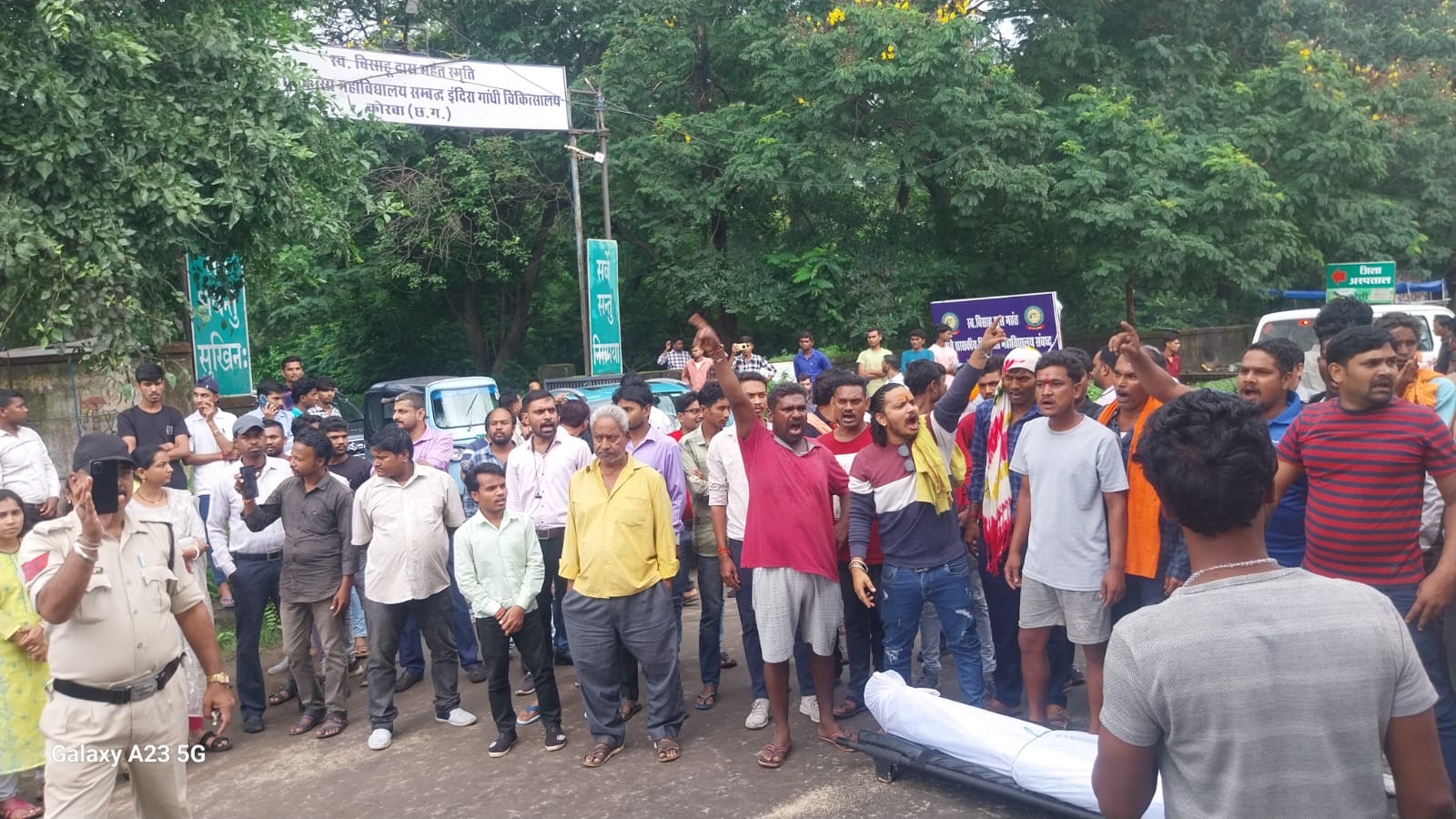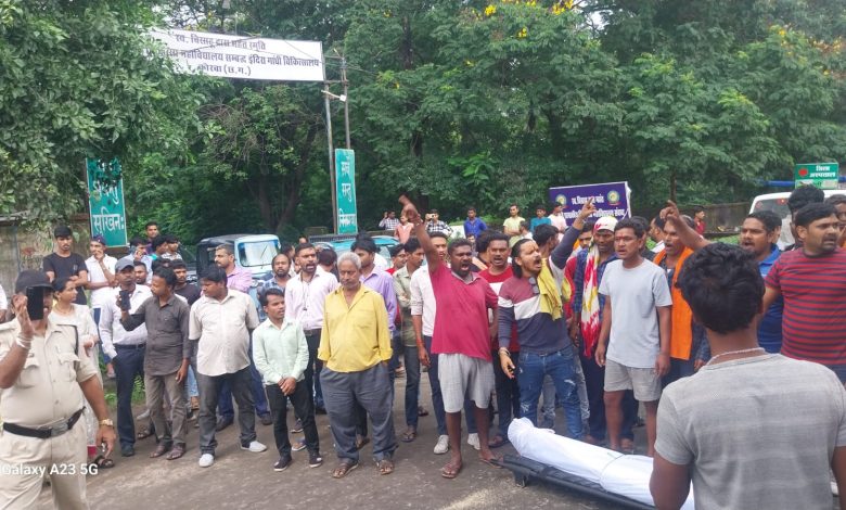 Korbavani.com- कोरबा जिला अस्पताल के मुख्य द्वार के सामने मृतका शव को लेकर परिजन धरना पर बैठे हैं मृतक काशीराम पटेल आयुष्मान कार्ड में कार्यकर्ता था बीते रात मृतक काशीराम पटेल कार्य से अपने घर लौट रहा था, जिला अस्पताल के मुख्य मार्ग भारी वाहन ट्रक की चपेट में आने से दर्दनाक मौत हो गई गुसाई परिजन ने मृतका शव को लेकर परिजन धरना पर बैठे हैं और मांगे कर रहे हैं परिजन का मांगे यह है कि 10 लाख रुपए मुआवजा, रोड में स्पिरिट ब्रेकर, मृतक के पत्नी को नौकरी जैसे मांगों को लेकर धरना पर बैठे हैं। सूचना पर पुलिस और अधिकारी मौके पर पहुंचे।