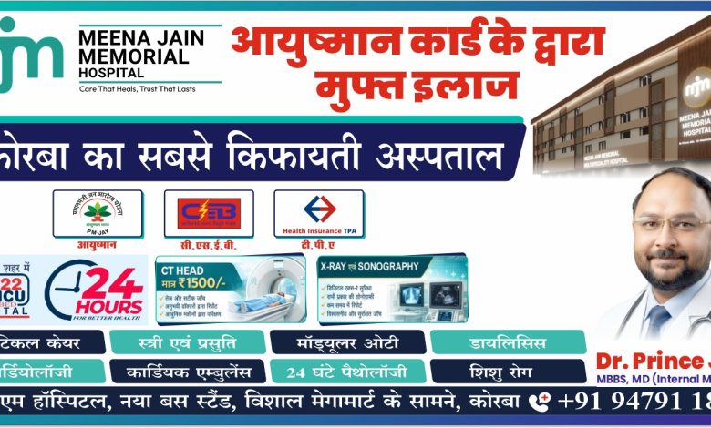 Korbavani.com। शहर में किफायती और बेहतर स्वास्थ्य सेवाओं की तलाश कर रहे लोगों के लिए राहत भरी खबर है। मीना जैन मेमोरियल (एमजेएम) हॉस्पिटल अब पूरी तरह कैशलेस इलाज केंद्र के रूप में उभरकर सामने आया है। यहां आयुष्मान कार्ड और विभिन्न हेल्थ इंश्योरेंस योजनाओं के माध्यम से मरीजों को न्यूरो, मेडिसिन, स्त्री रोग सहित कई गंभीर बीमारियों का निःशुल्क उपचार मिल रहा है।अस्पताल में आयुष्मान भारत योजना के तहत पात्र मरीजों को भर्ती से लेकर ऑपरेशन और दवाइयों तक सभी सुविधाएं बिना किसी खर्च के उपलब्ध कराई जा रही हैं। वहीं, टीपीए और अन्य बीमा कंपनियों से जुड़े मरीज भी कैशलेस इलाज का लाभ उठा रहे हैं, जिससे इलाज के दौरान आर्थिक बोझ कम हो रहा है। एमजेएम हॉस्पिटल में न्यूरो (मस्तिष्क रोग), जनरल मेडिसिन, स्त्री एवं प्रसूति रोग, शिशु रोग और ऑर्थोपेडिक्स जैसी प्रमुख सेवाएं विशेषज्ञ डॉक्टरों द्वारा दी जा रही हैं। गंभीर मरीजों के लिए आईसीयू और क्रिटिकल केयर यूनिट 24 घंटे सक्रिय है, जहां लगातार डॉक्टरों की निगरानी में उपचार होता है।अस्पताल की सबसे खास बात इसकी किफायती दरें हैं। यहां CT स्कैन (हेड) मात्र 1500 रुपये में किया जा रहा है, जो अन्य संस्थानों की तुलना में काफी सस्ता है। इसके अलावा पैथोलॉजी, एक्स-रे, सोनोग्राफी और डायलिसिस जैसी सुविधाएं भी एक ही छत के नीचे उपलब्ध हैं। करीब 100 बेड की क्षमता वाले इस आधुनिक अस्पताल में मॉड्यूलर ऑपरेशन थिएटर, 24×7 इमरजेंसी सेवा, ट्रामा एम्बुलेंस और तेज जांच व्यवस्था जैसी सुविधाएं मौजूद हैं, जिससे मरीजों को त्वरित और प्रभावी इलाज मिल रहा है।अस्पताल के डायरेक्टर डॉ. प्रिंस जैन ने बताया कि उनका उद्देश्य कोरबा के हर व्यक्ति को बिना आर्थिक परेशानी के बेहतर इलाज उपलब्ध कराना है। आयुष्मान योजना और हेल्थ इंश्योरेंस के जरिए अधिक से अधिक लोगों को कैशलेस और निःशुल्क उपचार देने का प्रयास किया जा रहा है। नया बस स्टैंड के पास, विशाल मेगामार्ट के सामने स्थित एमजेएम हॉस्पिटल अपनी बेहतर सेवाओं, सस्ती दरों और सुविधाजनक लोकेशन के कारण तेजी से लोगों की पहली पसंद बनता जा रहा है। शहर के साथ-साथ ग्रामीण इलाकों से भी बड़ी संख्या में मरीज यहां पहुंच रहे हैं।स्वास्थ्य सेवाओं के क्षेत्र में एमजेएम हॉस्पिटल ने यह साबित कर दिया है कि बेहतर इलाज अब महंगा नहीं, बल्कि हर व्यक्ति की पहुंच में है।