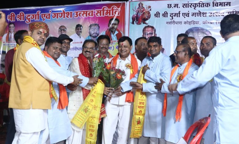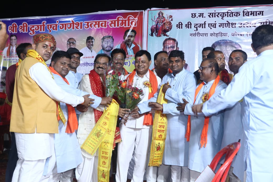 Korbavani.com- वार्ड क्रमांक 16 कोहड़िया के नर्सरी पारा में श्री दुर्गा एवम गणेश उत्सव समिति द्वारा आयोजित भव्य जगराता कार्यक्रम में मुख्य अतिथि के रूप में वाणिज्य उद्योग और श्रम मंत्री लखन लाल देवांगन, विशिष्ट अतिथि के रूप में पार्षद नरेंद्र देवांगन, दिनेश मोदी उपस्थित रहे।माता के जगराता में मंत्री श्री देवांगन ने दुर्गा माता की अराधना एवं पूजा अर्चना कर कार्यक्रम का शुभारंभ किया। जगराता में छत्तीसगढ़ के सुप्रसिद्ध कलाकार दिलीप षड़ंगी के गानों से माहौल और भी देवी मय हो गया। इस अवसर पर संबोधित करते हुए मंत्री श्री देवांगन ने इस अवसर पर कहा कि देवी दुर्गा की अराधना से समाज में असुरी शक्तियों का नाश होता है। जगराता में शामिल होकर हम सभी श्रद्धालुजन पुण्य के भागी बन रहे हैं, शहर में भक्ति का माहौल है। देवी माता की अराधना से सभी परिवारों में सुख और समृद्धि आती है। हम नौ दिनों तक देवी मां की अराधना करते हैं और हमारे शहर में हम सब मिलकर दुर्गा माता की पूजा भी करते हैं। मंत्री श्री देवांगन माता के जगराता में शामिल होकर शहर वासियों को नवरात्रि पर्व की बधाई दी। उन्होंने कहा कि इस तरह के बड़े कार्यक्रम से वार्ड के लोगों में सामाजिक समरसता के साथ साथ एकजुटता भी बढ़ती है। उन्होंने कहा की आज कोरबा शहर के हर वार्ड का तेजी से विकास किया जा रहा है। जितने भी कार्य स्वीकृत किए हैं सभी का फंड भी जारी किया जा चुका है, मानसून सीजन खत्म होते ही सभी कार्य प्रारंभ हो जाएंगे।इसी तरह वार्ड की जनता को संबोधित करते हुए पार्षद श्री नरेंद्र देवांगन ने कहा की वॉर्ड क्रमांक 16 के बरपारा, खान मोहल्ला, नर्सरी पारा, चरपारा समेत सभी बस्तियों में विकास कार्य के लिए इन 8 महिने में राशि जारी की जा चुकी है। आने वाले 3 से 4 महीने में सभी कार्य पूर्ण भी हो जाएंगे। इस अवसर पर समिति के अध्यक्ष श्याम श्रीवास, रामकुमार कश्यप, सोहन साहू, सत्य प्रकाश साहू, भोजराम यादव, रामचरण पटेल, प्रवीण साहू, तनेश साहू, बाबूलाल साहू, राजकुमार बरेठ समेत अन्य उपस्थित रहे।
