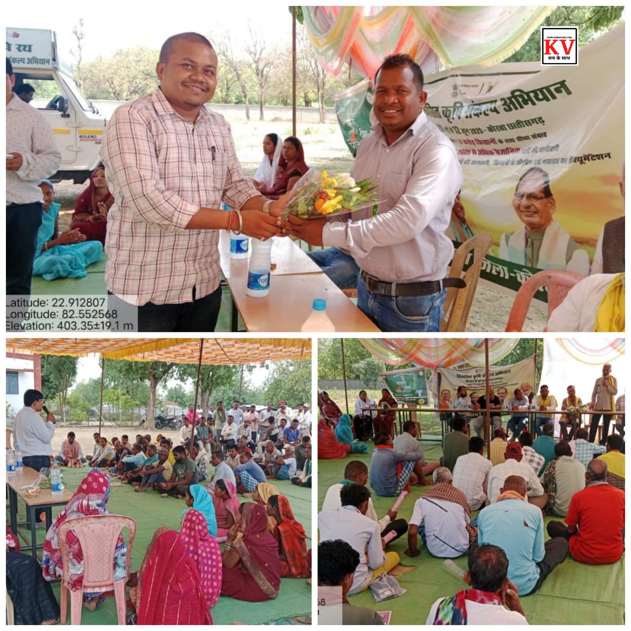 Korbavani.com- 03 जून मंगलवार को ग्राम सिमगा में विकसित कृषि संकल्प अभियान के तहत एक दिवसीय कृषक शिविर का आयोजन किया गया. इस शिविर में कृषि विज्ञान केंद्र कटघोरा से दीपक तंवर, उद्यानिकी विभाग से अमित सोनी, मत्स्य पालन विभाग से कमल किशोर सिंह, पशुपालन विभाग से डॉ. पटेल, मणिराम उइके व राम सरीमन तथा कृषि विभाग से सुरेश नागदेव व मनीष डिक्सेना द्वारा किसानों को विभागीय योजनाओं, नवीन तकनीकों, परंपरागत विधियों एवं कम लागत में अधिक उत्पादन की जानकारी प्रदान की गई। शिविर में किसानों से खेती संबंधी समस्याओं पर चर्चा कर समाधान भी प्रस्तुत किए गए एवं फीडबैक लिया गया।कार्यक्रम में जिला पंचायत सदस्य विद्वान सिंह मरकाम, जनपद सदस्य भारत सिंह, जनपद पंचायत पोड़ी उपरोड़ा की पशुपालन एवं मत्स्य सभापति गायत्री आयाम, सरपंच श्याम बाई बिंझवार, पूर्व सभापति संतराम श्याम समेत घोंसरा, सिमगा, जाम एवं कछार पंचायतों के किसान बंधु उपस्थित रहे। शिविर का उद्देश्य किसानों को आत्मनिर्भर बनाना एवं उन्नत कृषि पद्धतियों से जोड़ना रहा।