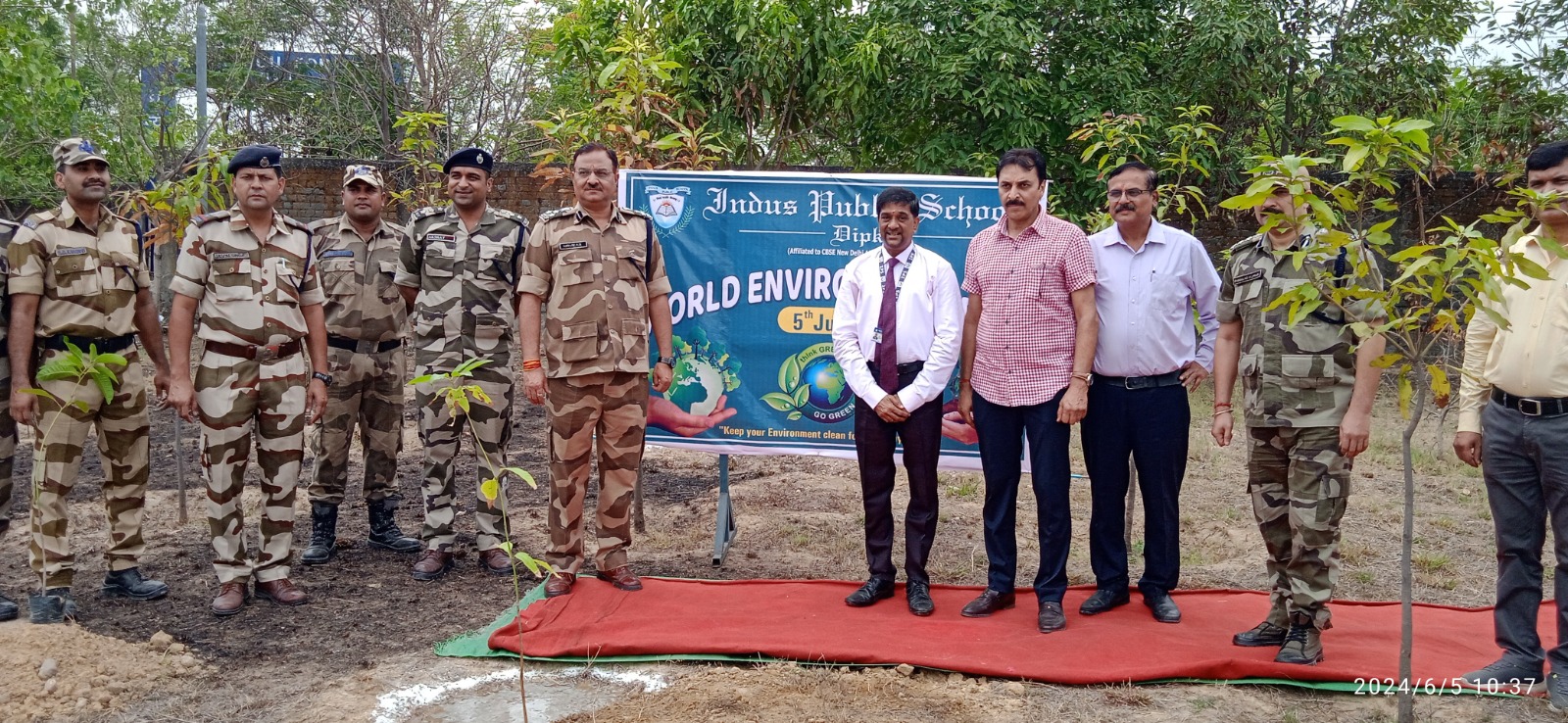 विश्व पर्यावरण दिवस के अवसर पर पौधरोपण हेतु विद्यालय में विशेष रूप से अतिथियों के रूप में – निर्विकार (डीआईजी, सीआईएसएफ), भास्कर कुमार (सीनियर कमोन्डेंट, सीआईएसएफ), अक्षय (असिस्टेंट कमांडेंट, सीआईएसएफ), विपिन मलिक (डायरेक्टर, एसीबी), कप्तान ए. के. सिंह (एडमिन, एसीबी) उपस्थित थे। सभी अतिथियों ने विद्यालय परिसर में विभिन्न औषधीय एवं छायादार पौधों का रोपण किया।