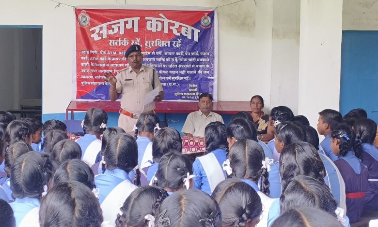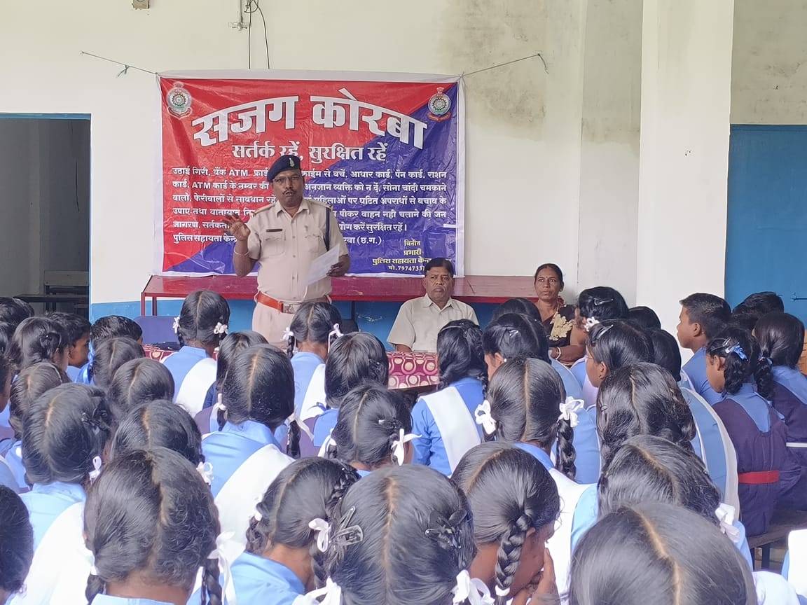 Korbavani.com- पुलिस अधीक्षक कोरबा सिद्धार्थ तिवारी के दिशा निर्देशन में कोरबा ज़िले में सजग कोरबा के तहत जागरूकता अभियान चलाया जा रहा है। थाना/चौकी प्रभारीगण के द्वारा उनके थाना क्षेत्र अंतर्गत आने वाले स्कूल/कॉलेज में जाकर बच्चों को जागरूक किया जा रहा है।इसी क्रम में चौकी जटगा के द्वारा हायर सेकेण्डरी स्कूल जटगा में बच्चों को सजग किया गया। बच्चों को सड़क दुर्घटनाओं की संख्या अधिक होने की बात बताते हुए लोगो को शराब पीकर गाड़ी नहीं चलाने एवं यातायात नियमों का पालन करने को कहाँ गया। हेलमेट और सीट बेल्ट का प्रयोग करने एवं मालवाहक गाड़ियों में सवारी नहीं बैठाने के संबंध में भी बताया गया। वहाँ उपस्थित लोगो को डायल 112 एवं हाईवे में आपातकालीन डायल 1033 के बारे में जानकारी दिया गया।बैठक में नवीन क़ानून के बारे में जागरूक किया गया कि ये 1 जुलाई से लागू हुए है। उपस्थित बच्चों को गुड टच बैड टच के बारे में भी अवगत कराया गया। अभी के मौसम के बारे में बताया गया जिसमें बरसात के समय गाज गिरने से, जहरीले सांप बिच्छू के डसने, बारिश में उप नदी नाले में बहने, गंदे पानी के उपयोग करने एवं बरसाती बीमारियों से बचने के उपाय एवं त्रिकोण के बारे में बताया गया। इसके अतिरिक्त उपस्थित बच्चों को साइबर अपराध होने पर नजदीकी थाने या साइबर हेल्पलाइन नंबर 1930 में तुरंत फोन कर अपनी शिकायत दर्ज कारवाना है ATM संबंधी ठगी के संबंध में बच्चों को जागरूक किया गया, और सोशल मीडिया के दुष्परिणामों से अवगत कर जानकारी दिया गया।