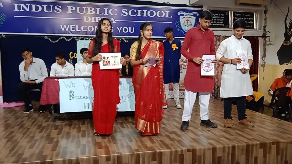 उपरोक्त सभी तथ्यों को ध्यान में रखते हुए इंडस पब्लिक स्कूल दीपका में विद्यार्थियों* को लोकतंत्र में मतदान का महत्व समझाने हेतु एवं चुनाव प्रक्रिया की जानकारी प्रदान करने हेतु मॉडल इलेक्शन प्रक्रिया का आयोजन किया गया। इस चुनाव प्रक्रिया में विद्यार्थियों को अलग-अलग दल में विभाजित किया गया तथा प्रत्येक दल से एक-एक उम्मीदवार का चयन किया गया। प्रत्येक दल का नाम भी अलग-अलग रखा गया।जैसे- यूथ पावर ऑर्गेनाइजेशन, अखंड जनता पार्टी,वुमन एंपावरमेंट पार्टी एवं स्वराज जनता पार्टी। सभी पार्टी ने अपने पक्ष में मतदान करने हेतु विद्यार्थियों के मध्य जा जाकर जोर शोर से प्रचार प्रसार किया। सभी चुनाव पार्टी को अलग-अलग चुनाव चिन्ह भी प्रदान किया गया था। डमी इलेक्शन कमिशन भी बनाया गया था। कक्षा नवमी एवं 11वीं के विद्यार्थियों ने अपने-अपने मताधिकार का प्रयोग किया। मतदान में पूरी गोपनीयता बरती गई।अंत में चुनाव परिणाम की घोषणा की गई। स्वराज जनता पार्टी ने सबसे अधिक वोट प्राप्त किया एवं चुनावी प्रक्रिया में विजय का तिलक स्वराज जनता पार्टी के उम्मीदवार पर लगाया गया। यूथ पावर ऑर्गेनाइजेशन पार्टी में कक्षा दसवीं से विराट ,विशेष, ऋषभ बिरयानी एवं प्रियंका ने कार्यभार संभाला, वुमन एंपावरमेंट पार्टी से स्वीटी, सानिया, शक्ति एवं जीशान ने कार्यभार संभाला , अखंड जनता पार्टी से भीष्म पियूष सारथी और प्रिया ने चुनावी प्रचार प्रसार में हिस्सा लिया तथा स्वराज जनता पार्टी से सागर रोशन माही और अमित ने अपने पार्टी का परचम लहराया।पूरी चुनावी प्रक्रिया को शांति ढंग से आयोजित करने में इलेक्शन कमीशन के मेंबर के रूप में तनिष कुमार ,प्राची, संगम सिहाग, शिवम अंशिका एवं क्षितिज ने अपनी महत्वपूर्ण भूमिका निभाई। इस पूरे आयोजन का एकमात्र उद्देश्य यही था कि विद्यार्थी देश की लोकतांत्रिक पद्धति के बारे में जाने एवं समझे। चुनाव की प्रक्रिया से अवगत होवें।विद्यार्थी चुनाव की पेचीदगियों एवं बारीकियां को करीब से समझें ।चुनावी प्रक्रिया को समझने का प्रयास करें। चुनावी प्रक्रिया का यह बेहतरीन आयोजन विद्यालय की सामाजिक विज्ञान की शिक्षिका सुश्री तान्या ज्योत्सना के मार्गदर्शन में संपन्न हुआ। सुश्री तान्या ज्योत्सना ने कहा कि यह विद्यार्थी हमारे देश के भविष्य हैं। यह आने वाले कल का चेहरा है। इन्हें देश की लोकतांत्रिक पद्धति के बारे में बताना अनिवार्य है ।देश की कार्यपालिका, न्यायपालिका एवं विधायिका को बताना अनिवार्य है ।इन्हें यह बताना आवश्यक है कि हमारे सांसद में कानून किस प्रकार पारित होता है। चुनावी प्रक्रिया किस प्रकार पूरी होती है ।कोई पार्टी चुनाव कैसे में शामिल होती है और चुनाव प्रक्रिया कैसे संप