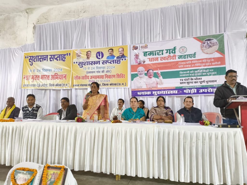 इस अवसर पर मुख्य अतिथि पोड़ी एसडीएम तुलाराम भारद्वाज ने कहा सुशासन सप्ताह का उद्देश्य ग्रामीणों तक सरकारी योजनाओं और सेवाओं का शत- प्रतिशत पहुंच सुनिश्चित करना है। आमजनों की समस्याओं को प्राथमिकता से दूर करना साथ ही उन्हें योजनाओं के प्रति जागरूक करते हुए उन्हें योजना का लाभ पहुँचना है। कहा कि सरकार की कल्याणकारी योजनाओं का लाभ मिलने तथा सरकारी सेवाओं का लाभ मिलने से निश्चित रूप से आमजनों की जीवन मे बदलाव आएगा, उनकी परेशानियां दूर होंगी।सरकार तथा जिला प्रशासन के प्रति उनका विश्वास भी बढ़ेगा।