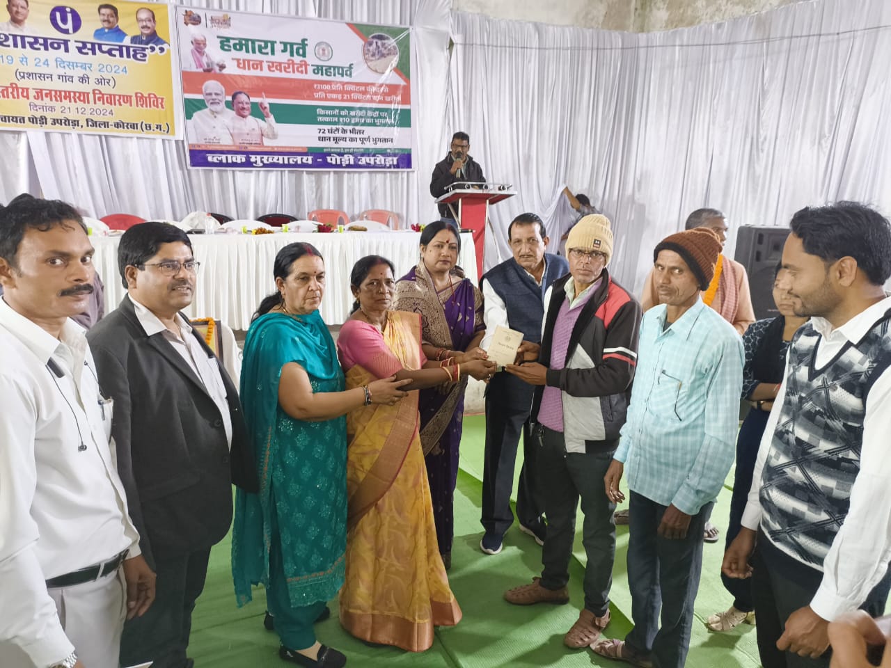Korbavani.com – जिले के जनपद पंचायत पोड़ी-उपरोड़ा में सुशासन सप्ताह-प्रशासन गांव की ओर अभियान के तहत जिला स्तरीय कार्यशाला का आयोजन सदभावना भवन में किया गया। कार्यक्रम में मुख्य अतिथि पोड़ी एसडीएम तुलाराम भारद्वाज, जनपद अध्यक्ष संतोषी पेंद्रों, जनपद उपाध्यक्ष रामप्यारी, प्रकाश जाखड, जनपद सदस्य किरण मरकाम,जनपद सदस्य गणेश्वरपूरी भोला गोस्वामी, जनपद सीईओ, जय प्रकाश डडसेना एवं सुश्री प्रीति खैरवार उपस्थिति में दीप प्रज्वलित कर कार्यक्रम को आगे बढ़ाया गया। कार्यक्रम के दौरान विभाग से संचालित योजनाओं की जानकारी दिए मौके पर प्राप्त आवेदन पत्र का निराकारण किया गया साथ ही कृषि विभाग द्वारा 10 किसानो को मुख्यमंत्री की पाती प्रमाण पत्र, स्कूल बच्चे को जाति प्रमाण पत्र, राजस्व विभाग द्वारा किसानों ऋण पुस्तिका, बिहान समूहों दीदी को लोन सहायता राशि व हितग्राही को राशन कार्ड प्रदाय किया गया,