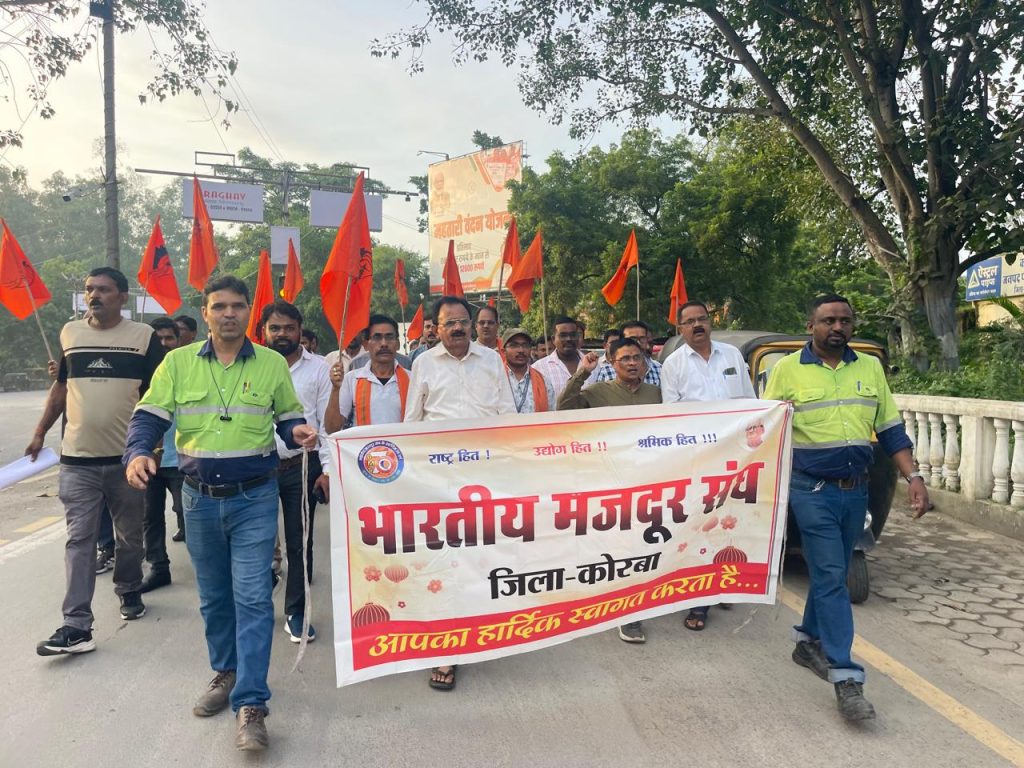 आमसभा को अखिल भारतीय एनटीपीसी मजदूर महासंघ के अध्यक्ष सुरेंद्र राठौर एवं अखिल भारतीय मजदूर संघ के राष्ट्रीय मंत्री व विद्युत प्रभारी राधेश्याम जायसवाल के द्वारा संबोधित किया गया। तत्पश्चात समस्त कार्यकर्ताओं के द्वारा रैली के माध्यम से नारेबाजी करते हुए कलेक्ट्रेट परिसर पहुंचे जहां जोरदार प्रदर्शन एवं नारेबाजी करते हुए कलेक्टर कार्यालय में तहसीलदार महोदय को प्रधानमंत्री भारत सरकार के नाम से ज्ञापन सौंपा गया। आमसभा एवं ज्ञापन कार्यक्रम में एसईसीएल के चारो क्षेत्र गेवरा, दीपका, कुसमुंडा, कोरबा, एनटीपीसी, बालको, बिजली उत्पादन के कोरबा पश्चिम, कोरबा पूर्व, बिजली वितरण इकाई, लैंको, रेलवे, आंगनबाड़ी, संविदा/ठेका मजदूर संघ, सेवानिवृत्त वरिष्ठ नागरिक संघ, नगर निगम स्वायत्तशासी कर्मचारी संघ, निर्माण मजदूर संघ के अध्यक्ष, महामंत्री/सचिव सहित पदाधिकारी/कार्यकर्ता लगभग 85 की संख्या में शामिल हुए।