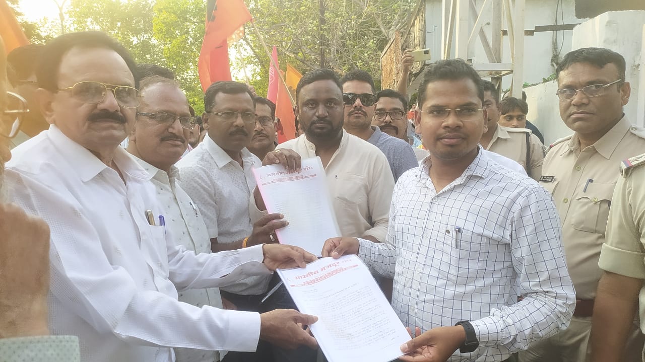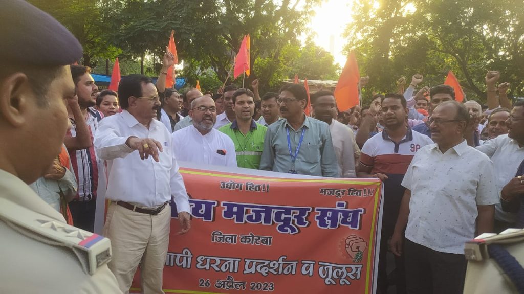 Korbavani.com- अखिल भारतीय मजदूर संघ का तीन दिवसीय त्रैवार्षिक राष्ट्रीय अधिवेशन पटना बिहार में लिए गए निर्णय अनुसार भारत के प्रत्येक जिला मुख्यालय में कलेक्टर के माध्यम से प्रधानमंत्री के नाम पर धरना, प्रदर्शन/जुलूस एवं ज्ञापन कार्यक्रम के तहत कोरबा जिला मुख्यालय में भी दिनांक 26 अप्रैल 2023 को 3:30 बजे भारतीय मजदूर संघ जिला कोरबा के द्वारा आईटीआई चौक रामपुर कोरबा के पास धरना प्रदर्शन आमसभा एवं रैली का आयोजन किया गया। आमसभा में भारतीय मजदूर संघ के राष्ट्रीय मंत्री राधेश्याम जायसवाल जी एवं राष्ट्रीय पर्यावरण मंच प्रभारी लक्ष्मण चंद्रा जी विशेष रूप से उपस्थित रहे। प्रदर्शन एवं आमसभा की अध्यक्षता जिला अध्यक्ष शरद नायर द्वारा किया गया एवं कार्यक्रम का सफल संचालन जिला मंत्री नवरतन बरेठ के द्वारा किया गया। आमसभा में भारतीय मजदूर संघ से संबद्ध कोरबा जिला के विभिन्न उद्योगों, महासंघो एसईसीएल, एनटीपीसी, बालको, बिजली उत्पादन, बिजली वितरण, लैंको, निर्माण मजदूर संघ, सहित सभी यूनियन से पदाधिकारियों एवं कार्यकर्ता बड़ी संख्या में शामिल हुए। धरना, प्रदर्शन एवं आम सभा को राष्ट्रीय पदाधिकारी राष्ट्रीय मंत्री राधेश्याम जायसवाल राष्ट्रीय पर्यावरण में प्रभारी लक्ष्मण चंद्रा सहित एसईसीएल से टिकेश्वर सिंह राठौर, एनटीपीसी से सुरेंद्र कुमार राठौर, बालको से संजीव शरद शर्मा, रेलवे से विवेकानंद चंद्र आदि ने भी संबोधित किया। आम सभा के पश्चात भारतीय मजदूर संघ जिला कोरबा के द्वारा एक रैली निकाला गया एवं नारेबाजी करते हुए प्रधानमंत्री भारत सरकार के नाम से जिला कलेक्टर को ज्ञापन सौंपा गया।।