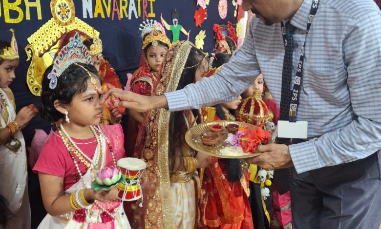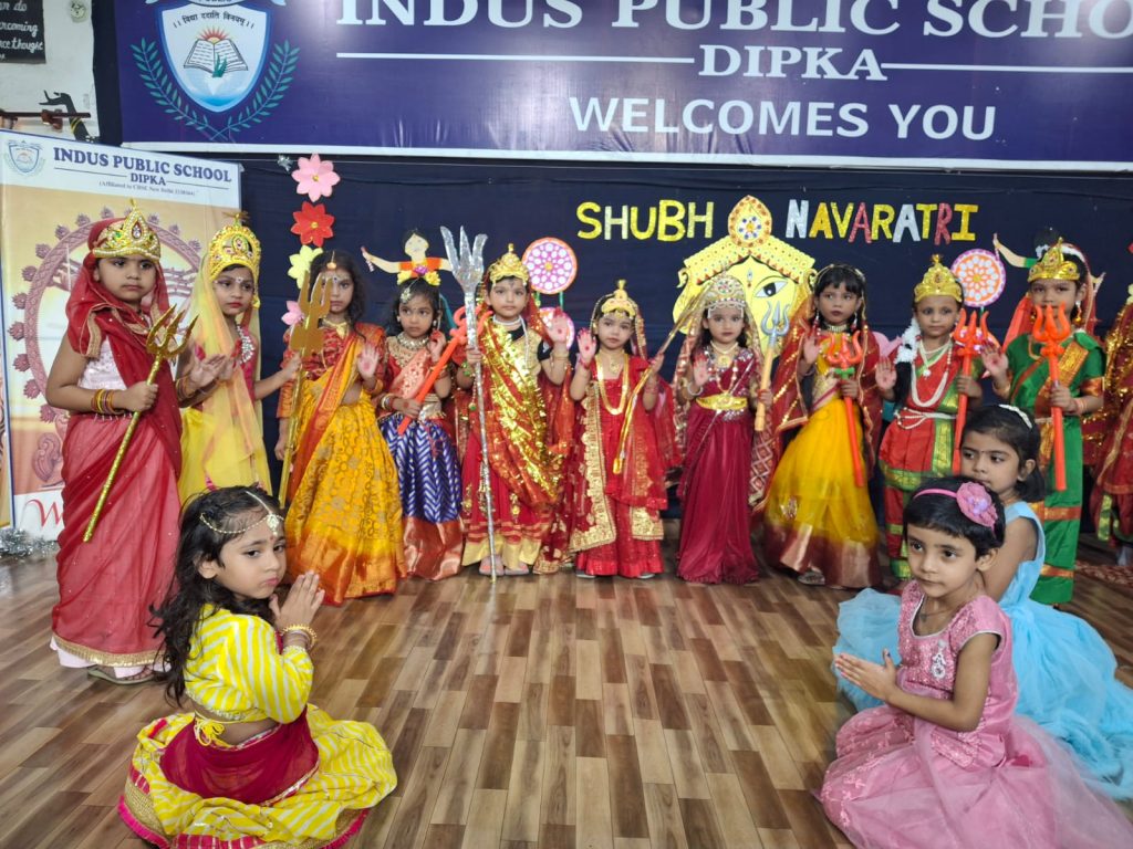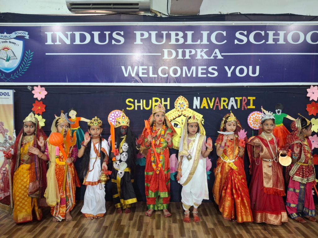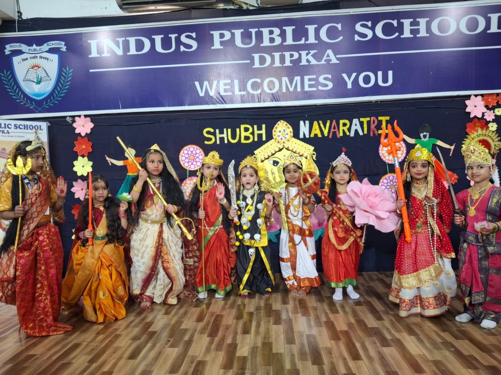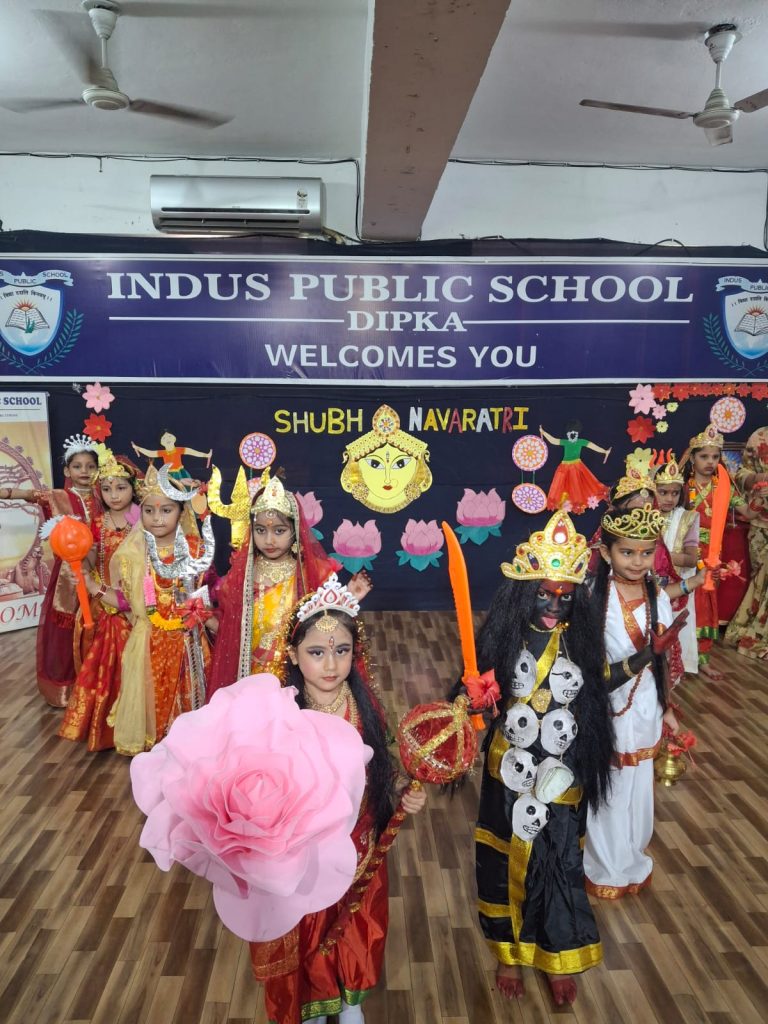 नवरात्रि के इसी पावन पर्व को ‘इंडस पब्लिक स्कूल-दीपका के नन्हें-मुन्हें बच्चों ने अपने अंदाज में मनाया। विभिन्न प्रकार की पारंपरिक वेशभूषा में बच्चों का उत्साह देखते ही बनता है। बच्चों ने माँ दुर्गा के अलग-अलग 9 रुपों का रुप धरा, जैसे-ब्रह्मचारिणी; स्कन्दमाता; कात्यायनी; शैलपुत्री; कालरात्रि; महागौरी; सिद्धीदात्री; कुष्माण्डा; चंद्रघंटा। इन सभी रुपों में बच्चे बड़े ही आकर्षक लग रहे थे। इनकी हृदयस्पर्शी मुस्कान और नयनाभिराम भावभंगिमा सहसा ही सबका मन मोह लेते थे, सर्वप्रथम माँ दुर्गा के इन जीवंत रुपों को ससम्मान पंक्तिबद्ध खड़े कर के पूरी श्रद्धा से विद्यालय के सम्माननीय प्राचार्य डॉ. संजय गुप्ता ने पूजा-अर्चना की तत्पश्चात विद्यालय के शिक्षक एवं शिक्षिकाओं ने भी क्रमशः पूजा-आरती की।