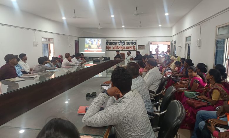 Korbavani.com- 03 जून को जनपद पंचायत पोंडी-उपरोड़ाे क्लस्टर अंतर्गत “मोर गांव मोर पानी” अभियान के तहत जल संरक्षण विषय पर एक दिवसीय प्रशिक्षण कार्यक्रम का आयोजन किया गया। यह कार्यक्रम ग्राम पंचायत स्तर पर सरपंच, सचिव, रोजगार सहायक, मेट, पंच एवं राष्ट्रीय ग्रामीण आजीविका मिशन (NRLM) की टीम के सदस्यों को जल संरक्षण के प्रति जागरूक करने के उद्देश्य से आयोजित किया गया। प्रशिक्षण के दौरान प्रोजेक्टर के माध्यम से जल संकट, संरक्षण तकनीक एवं वर्षा जल संचयन के महत्व पर आधारित वीडियो प्रदर्शित किए गए। उपस्थित प्रतिभागियों को जल का महत्व समझाते हुए जल संरक्षण की शपथ दिलाई गई। अधिकारियों द्वारा निर्देशित किया गया कि ग्राम पंचायतों में रैली, जनजागरूकता अभियान एवं अन्य माध्यमों से आमजन को पानी की महत्ता और उसके संरक्षण के उपायों की जानकारी दी जाए। ग्रामीण स्तर पर जल समवर्धन को जनआंदोलन का रूप देने का आह्वान किया गया।