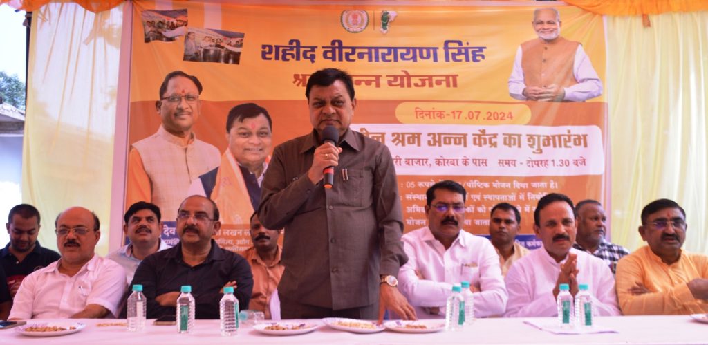 Korbavani.com- श्रम, उद्योग एवं वाणिज्य मंत्री श्री लखन लाल देवांगन ने आज कोरबा जिले के बुधवारी बजार में शहीद वीर नारायणसिंह श्रम अन्न योजना अंतर्गत निर्माण, संगठित एवं असंगठित वर्ग के श्रमिकों के लिए 05 रूपए में भरपेट भोजन की व्यवस्था हेतु दाल-भात केंद्र का शुभारंभ किया। यह जिले का दूसरा दाल भात केंद्र है। इस दौरान उन्हांने अतिथियों के साथ स्वयं भी श्रमिकों के बीच जाकर भोजन किया और श्रमिकों से अपील की कि वे इस दाल-भात केंद्र में आकर भोजन अवश्य करें। श्रम मंत्री ने इस अवसर पर विभाग अंतर्गत संचालित योजनाओं की जानकारी देते हुए कहा कि श्रम विभाग से जुड़े कुल तीन मंडल अंतर्गत 72 योजनाएं संचालित है। प्रधानमंत्री श्री नरेन्द्र मोदी ने सभी योजनाओं में हितग्राहियों को सामग्री प्रदान करने की बजाय सीधे उनके खाते में राशि देने की पहल किया है। इससे हितग्राही को सीधा लाभ पहुंचता है। उन्होंने कहा मुख्यमंत्री विष्णुदेव साय के द्वारा गरीबों के कल्याण के लिए कार्य किया जा रहा है। श्रम मंत्री श्री देवांगन ने आगे कहा कि श्रम विभाग की योजना श्रमिकों के लिए है। छत्तीसगढ़ का कोई भी श्रमिक योजनाओं से वंचित न रहे, उन्हें लाभ जरूर मिले। श्रम मंत्री होने के नाते उनकी भी कोशिश है कि कोरबा जिले के सभी श्रमिक योजनाओं का लाभ उठाएं। बुधवारी में दाल-भात केंद्र का शुभारंभ करते हुए मंत्री श्री देवांगन ने कहा कि इस योजना को प्रारंभ करने के लिए मुख्यमंत्री श्री विष्णुदेव साय ने तत्काल सहमति दी और आज उनके प्रयास से गरीब मजदूरों को किफायती दर में प्रदेश के 10 जिलों के 22 स्थानों में दाल-भात केंद्र संचालित हो रहा है।कोरबा जिले में तीन स्थानों पर दाल-भात केंद्र का संचालन होगा। जिसमें से बालकों के बाद आज दूसरा केंद्र प्रारंभ हो गया है। उन्होंने कहा कि प्रदेश में महतारी वंदन योजना के माध्यम से सभी महिलाओं को साल के 12 हजार रूपए का लाभ मिलने, किसानों को 3100 रूपए समर्थन मूल्य तथा तेंदूपत्ता संग्राहकों को 5500 रूपए मानक बोरा सहित अन्य योजनाओं से लाभान्वित करने का प्रयास किया जा रहा है। श्रमिकों के बच्चों के लिए आईएएस, आईपीएस सहित महत्वपूर्ण प्रतियोगी परीक्षाओं की तैयारी के लिए कोचिंग की सुविधा ऑनलाइन और ऑफलाइन माध्यम से देने पहल की गई है। कोरबा जिले के श्रमिकों के बच्चों को भी इसका लाभ मिलेगा। कार्यक्रम में आज जिले के 451 श्रमिक परिवारों को विभागीय योजनांतर्गत लगभग 01 करोड़ 17 लाख की राशि से लाभान्वित किया गया। मंत्री श्री देवांगन ने जिले के अन्य श्रमिकों को श्रम विभाग के अधिकारियों से योजनाओं के विषय में जानकारी प्राप्त कर योजनाओं का लाभ उठाने की अपील की।* कार्यक्रम को राजीव सिंह, देवन्द्र पाण्डेय ने भी संबोधित किया। सहायक श