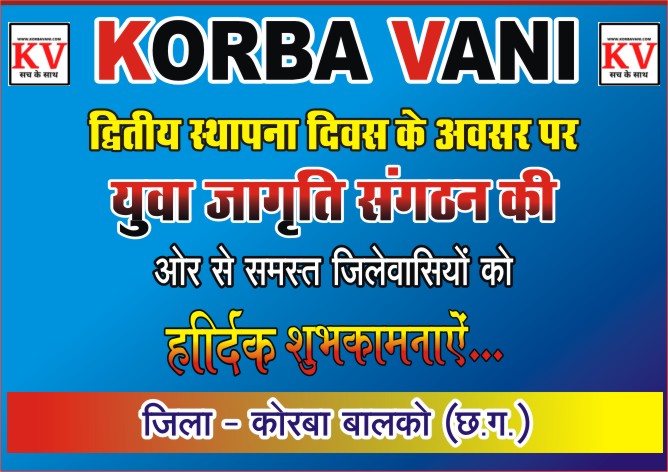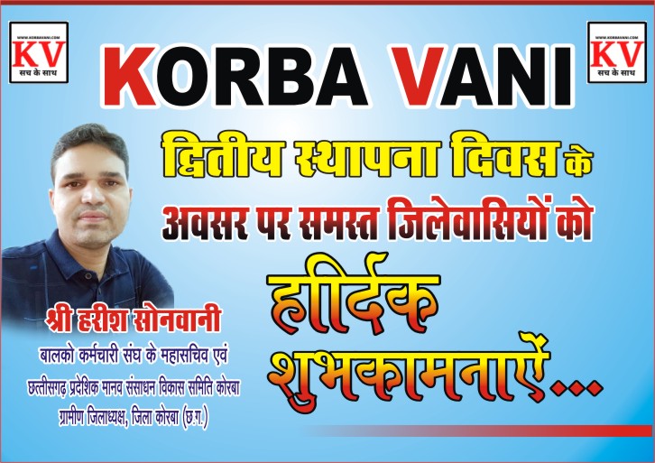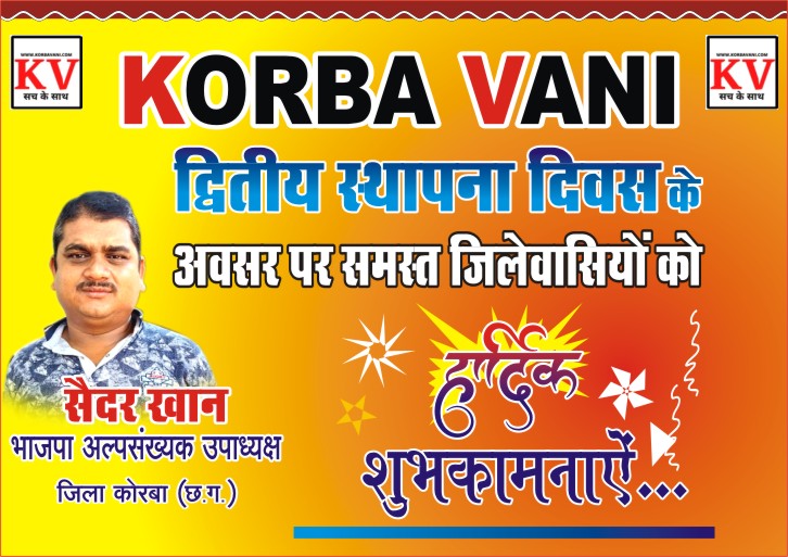 आप सभी के प्रिय वेब पोर्टल न्यूज़ Korbavani के द्वितीय स्थापना दिवस की ढेर सारी शुभकामनाएं. आप सभी पाठकों को हृदय से नमन.