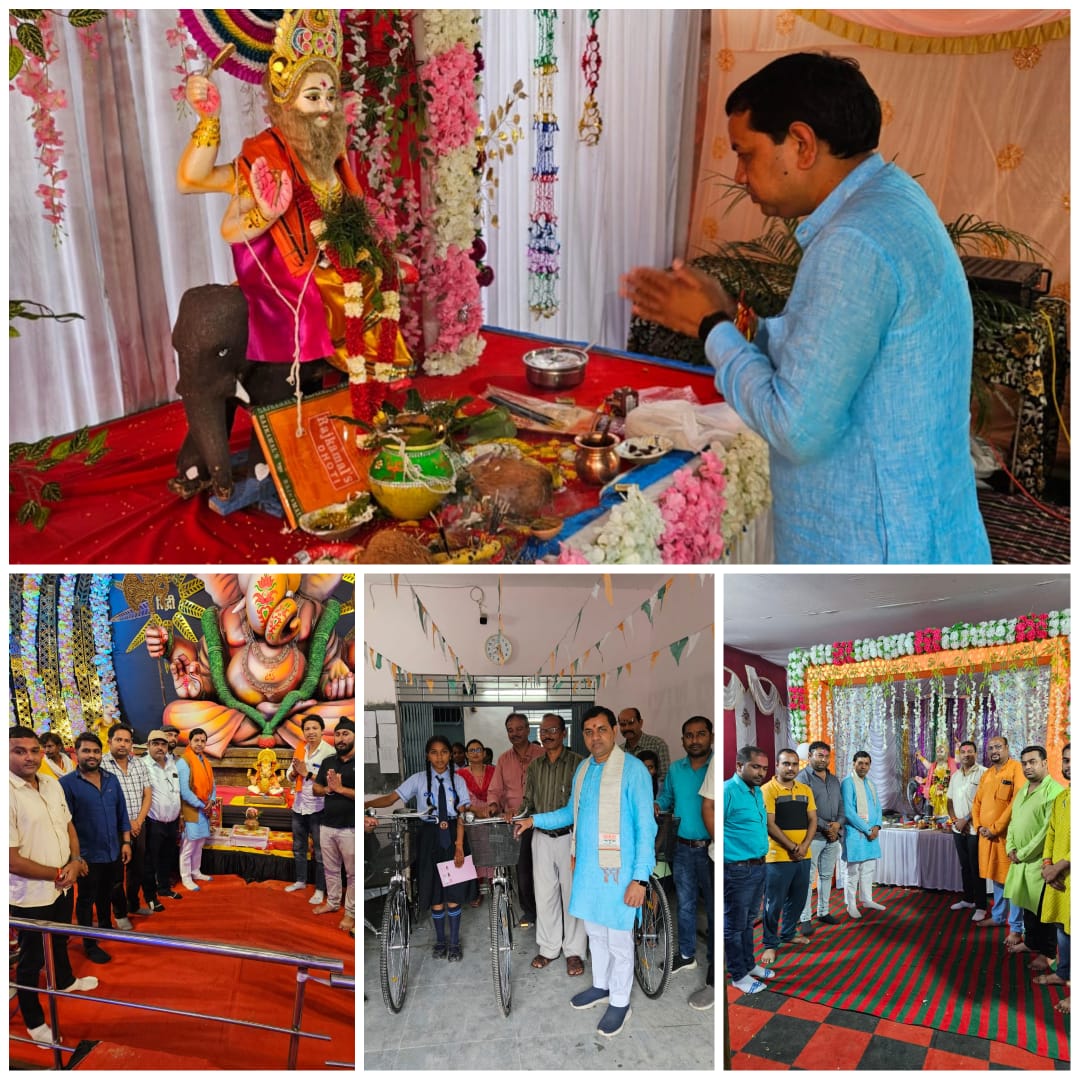 इस अवसर पर पार्षद नरेंद्र देवांगन ने कहा कि आज विश्‍वकर्मा जयंती है और ब्रह्मांड के पहले शिल्‍पकार भगवान विश्‍वकर्मा का जन्‍मोत्‍सव हर साल की तरह ऊर्जाधानी मे धूमधाम के साथ मनाई जा रही है। कुशल कामगार औजार और हथियार का प्रयोग करने वाले लोग विश्‍वकर्मा भगवान की पूजा करते हैं और अपने-अपने औजारों और हथियारों को साफ करके उनकी पूजा करके प्रसाद चढ़ाते हैं। कोरबा में विभिन्न कारखाने, गैरेज, दुकानों और प्रतिष्ठानों में हर साल कामगारों को इस दिन का इंतजार रहता है। पार्षद नरेंद्र देवांगन ने कहा की आज श्रमिक भाई बहनों के लिय बहुत ऐतिहासिक दिन है। आज प्रधानमंत्री जी साढ़े 8 लाख पीएम आवास की राशि जारी कर रहे हैं, वहीं मुख्यमंत्री विष्णुदेव साय जी और श्रम मंत्री लखन लाल देवांगन द्वारा प्रदेश के 57 हजारों श्रमिकों को आज करोड़ों रूपए जारी किए गए हैं।इस अवसर पर प्रदेश कार्यसमिति सदस्य पि. वर्ग मोर्चा छ.ग मनोज यादव,भाजयुमो अध्यक्ष दर्री मुकुंद सिंह कंवर,युवा भाजपा नेता रामकुमार राठौर,भाजयुमो कार्यसमिति सदस्य दर्री नरेन्द्र गोस्वामी,युगल किशोर डोंगरे,आशीष द्विवेदी साथ में उपस्थित थे!