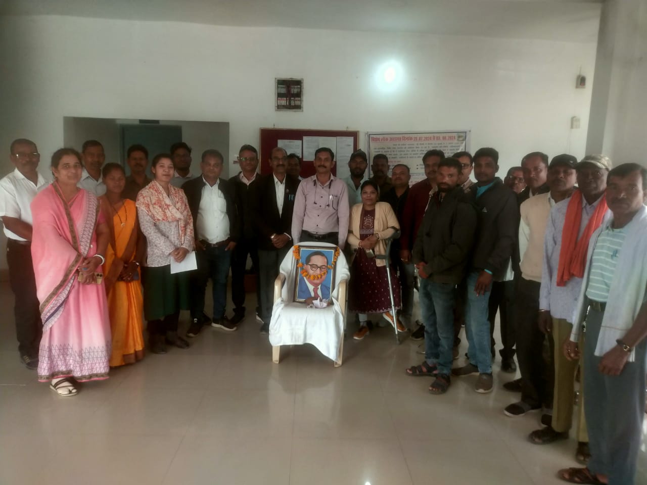 Korbavani.com- देश भर में मनाए जाने वाले संविधान दिवस के अवसर पर कोरबा जिले के पोड़ी-उपरोड़ा तहसील कार्यालय में 26 नवंबर मंगलवार को संविधान दिवस मनाया गया। इन कार्यक्रमों में एसडीएम और तहसील कर्मचारियों ने भीमराव अंबेडकर के चित्र पर माल्यार्पण करने के बाद भारतीय संविधान को प्राथमिकता पर रखने की शपथ ली। एसडीएम T.R. भरतद्वाज ने सभी कर्मियों को संविधान की उद्देशिका का वाचन कराया। नायब तहसीलदार सुमनदास मानिकपुरी सहित अनेक कर्मचारियों ने संविधान की उद्देशिका का वाचन किया।