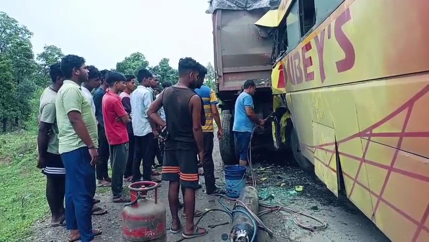 Korbavani.com- 01 जुलाई बीती रात करीब 4 बजे बांगो थाना क्षेत्र अंतर्गत बरौदखार के पास बिलासपुर-अंबिकापुर नेशनल हाईवे-130 पर एक दर्दनाक हादसा हुआ। झारखंड के गढ़वा से रायपुर जा रही दुबे ट्रेवल्स की यात्री बस सड़क किनारे खड़े ट्रेलर से जा टकराई। टक्कर इतनी जबरदस्त थी कि कई यात्री घायल हो गए, वहीं एक यात्री बस की सीट में बुरी तरह फंस गया जिसे पांच घंटे की मशक्कत के बाद बाहर निकाला जा सका।हादसे के बाद घायलों को 112 की सहायता से नजदीकी सरकारी अस्पताल में भर्ती कराया गया, जहां प्राथमिक उपचार के बाद अधिकांश यात्री अन्य बसों से गंतव्य की ओर रवाना हो गए।बताया गया कि ट्रेलर का चालक वाहन किनारे खड़ा कर आराम कर रहा था, इसी दौरान तेज रफ्तार बस के चालक को नींद की झपकी आने से यह दुर्घटना घटित हुई। स्लीपर में सो रहे यात्रियों की नींद जोरदार टक्कर से टूटी और वे घबराकर बाहर निकले। हादसे के तुरंत बाद बस का चालक और कंडक्टर फरार हो गए। थाना प्रभारी दुर्गेश वर्मा ने बताया कि मामला दर्ज कर जांच प्रारंभ कर दी गई है।